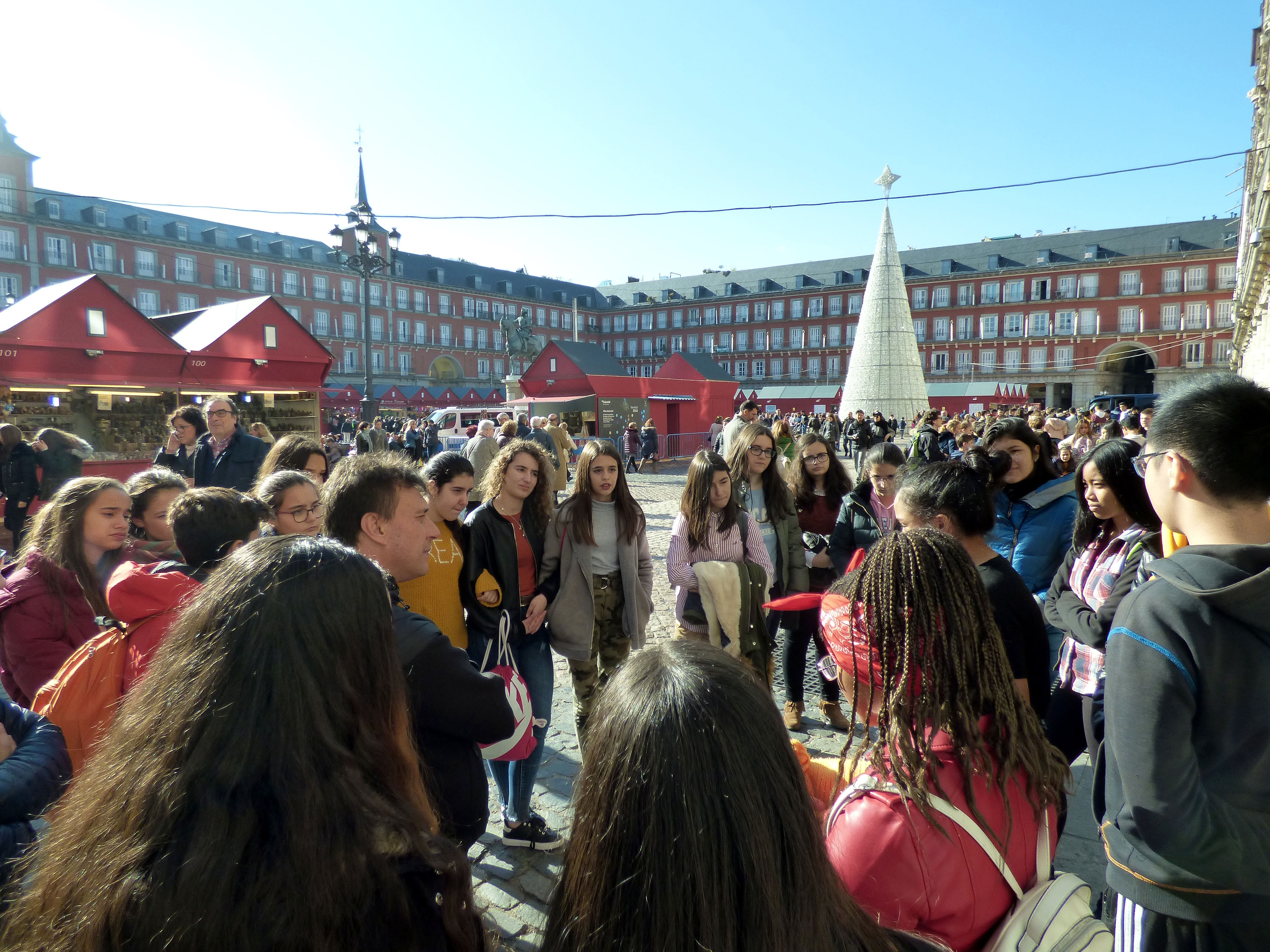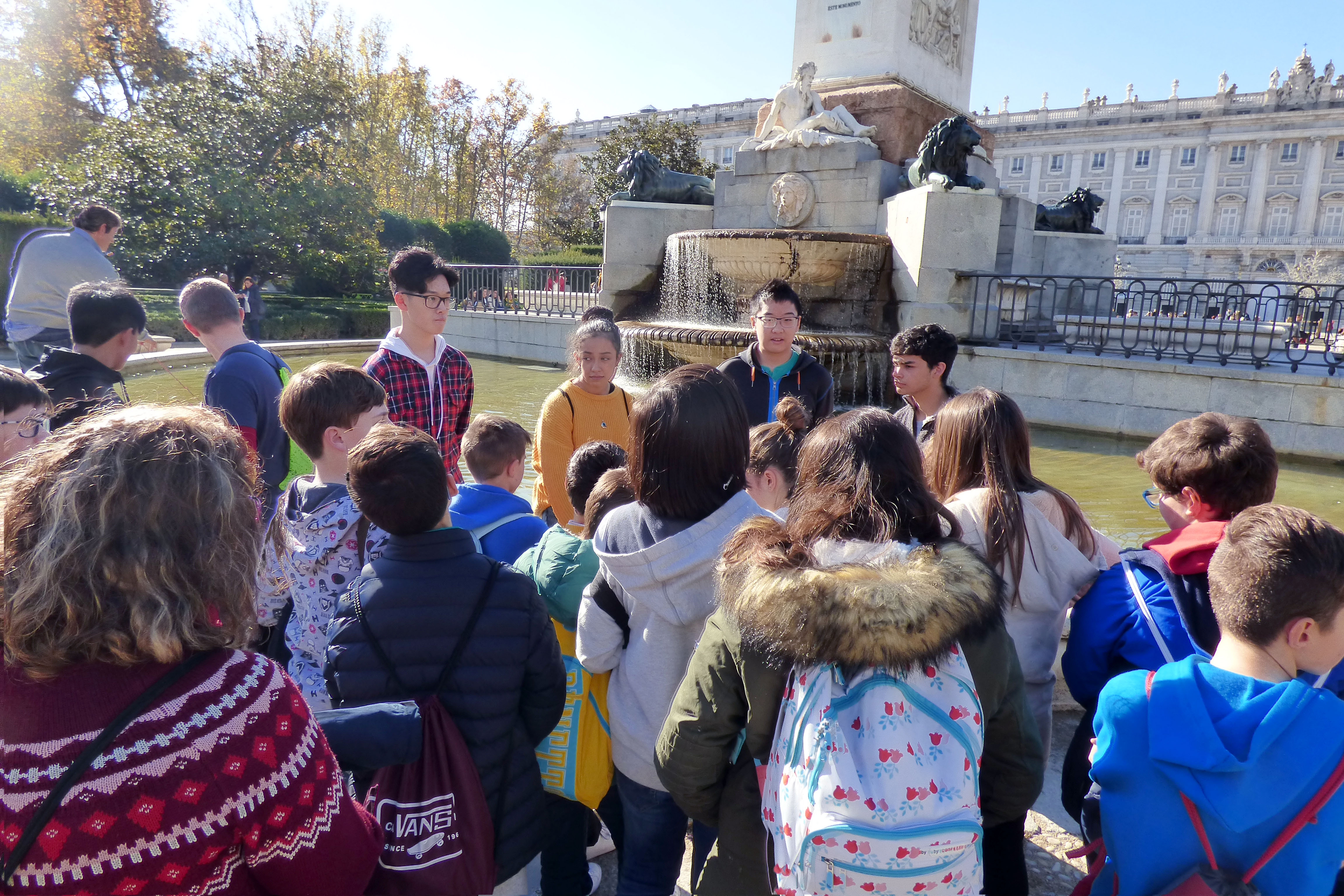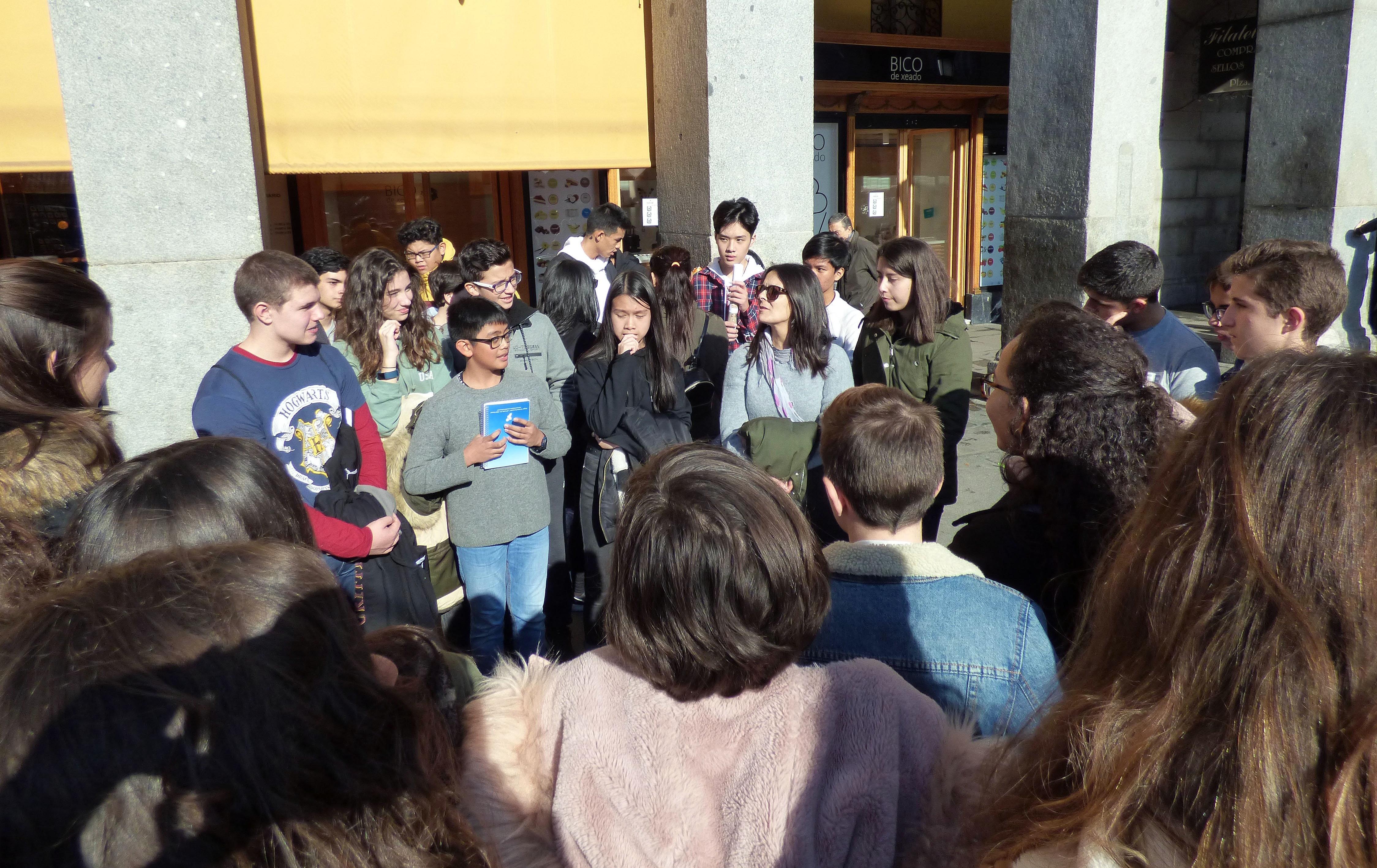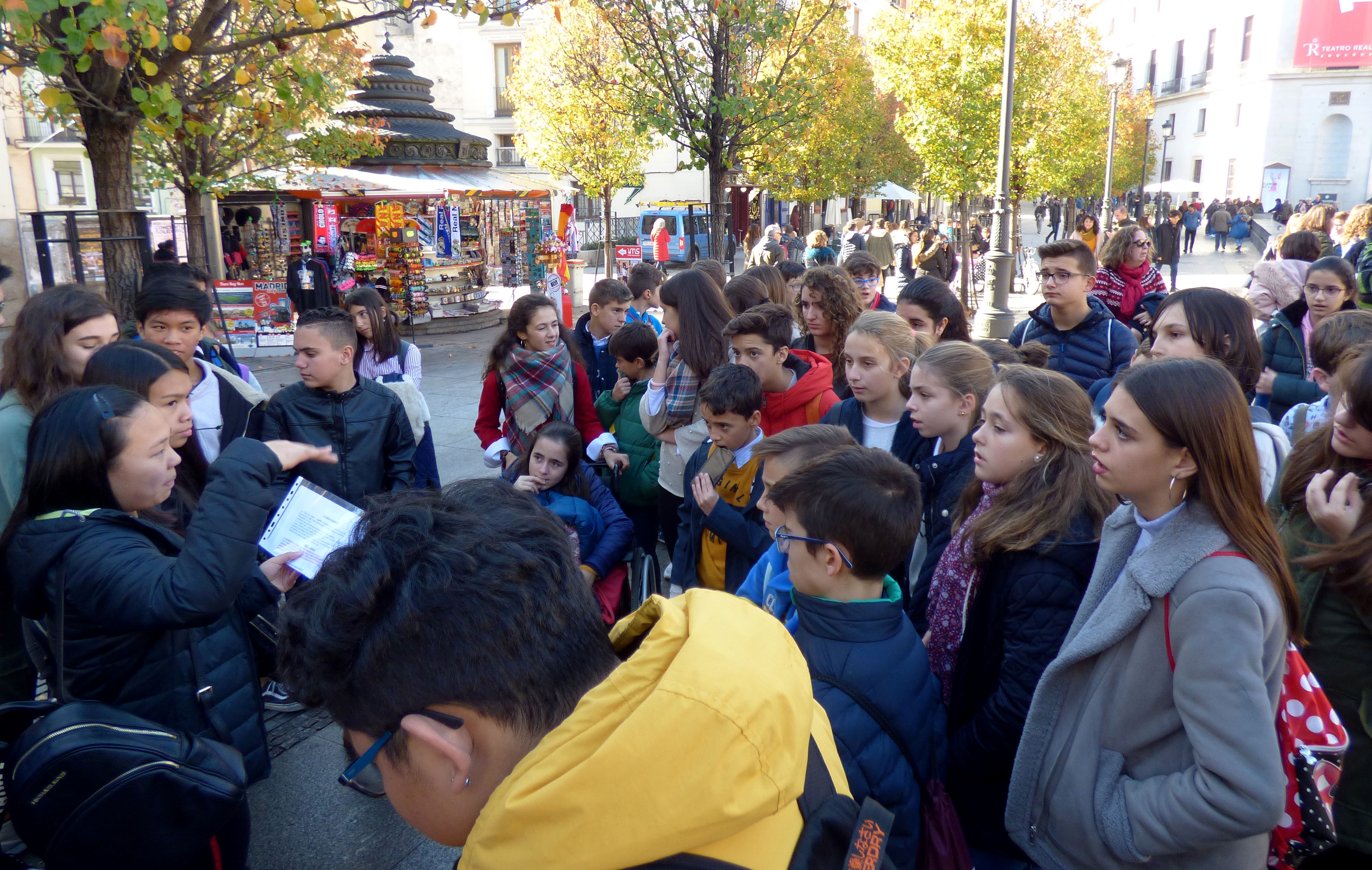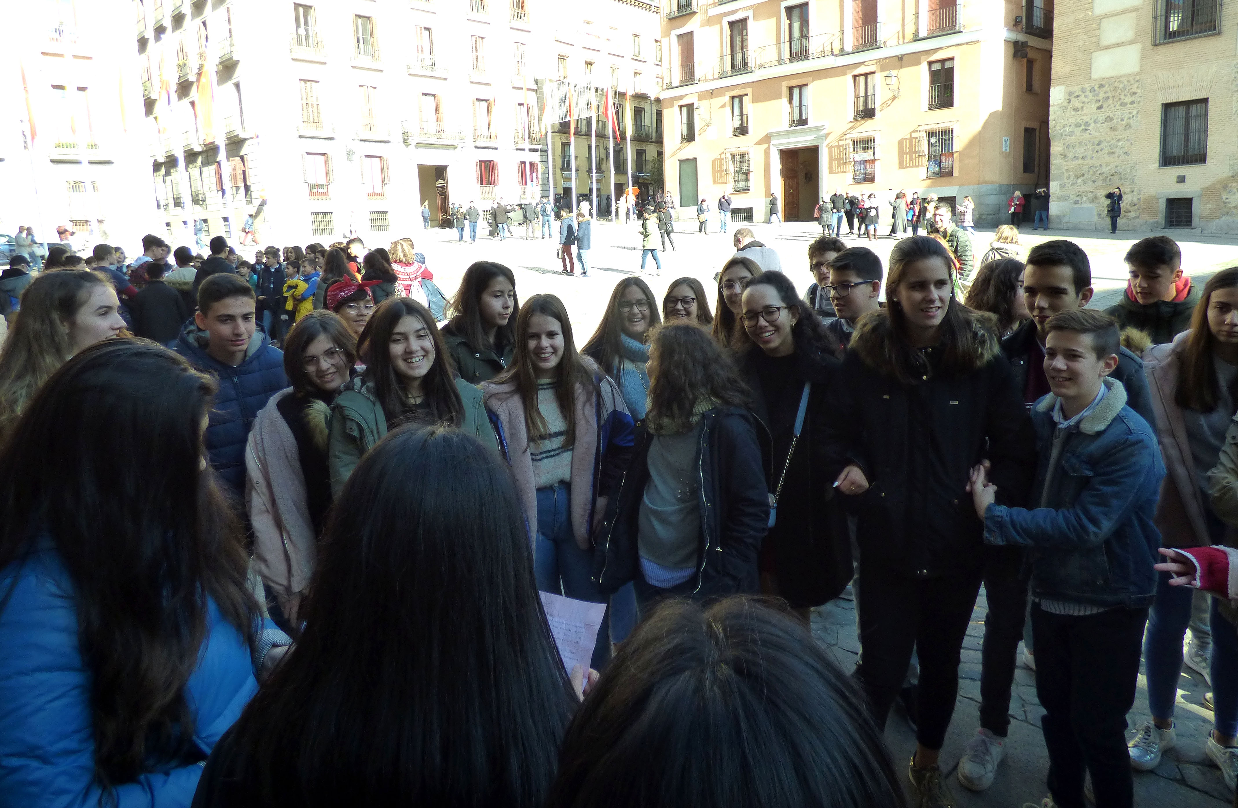 Nuestros compañeros de Secundaria del colegio de Mora, más de sesenta, vinieron a visitar el Madrid de los Austrias el pasado viernes 30 de noviembre y los alumnos de tercero de la ESO del cole nos preparamos un recorrido para explicarles la información más relevante desde San Antonio de los alemanes hasta el Palacio Real. Fue una experiencia muy emocionante, estamos muy agradecidos por las felicitaciones que recibimos de nuestras exposiciones orales y estamos deseando volver a encontrarnos allí, en su colegio, para participar en una gymkhana. Gracias Colegio María Inmaculada-Mora!!!!