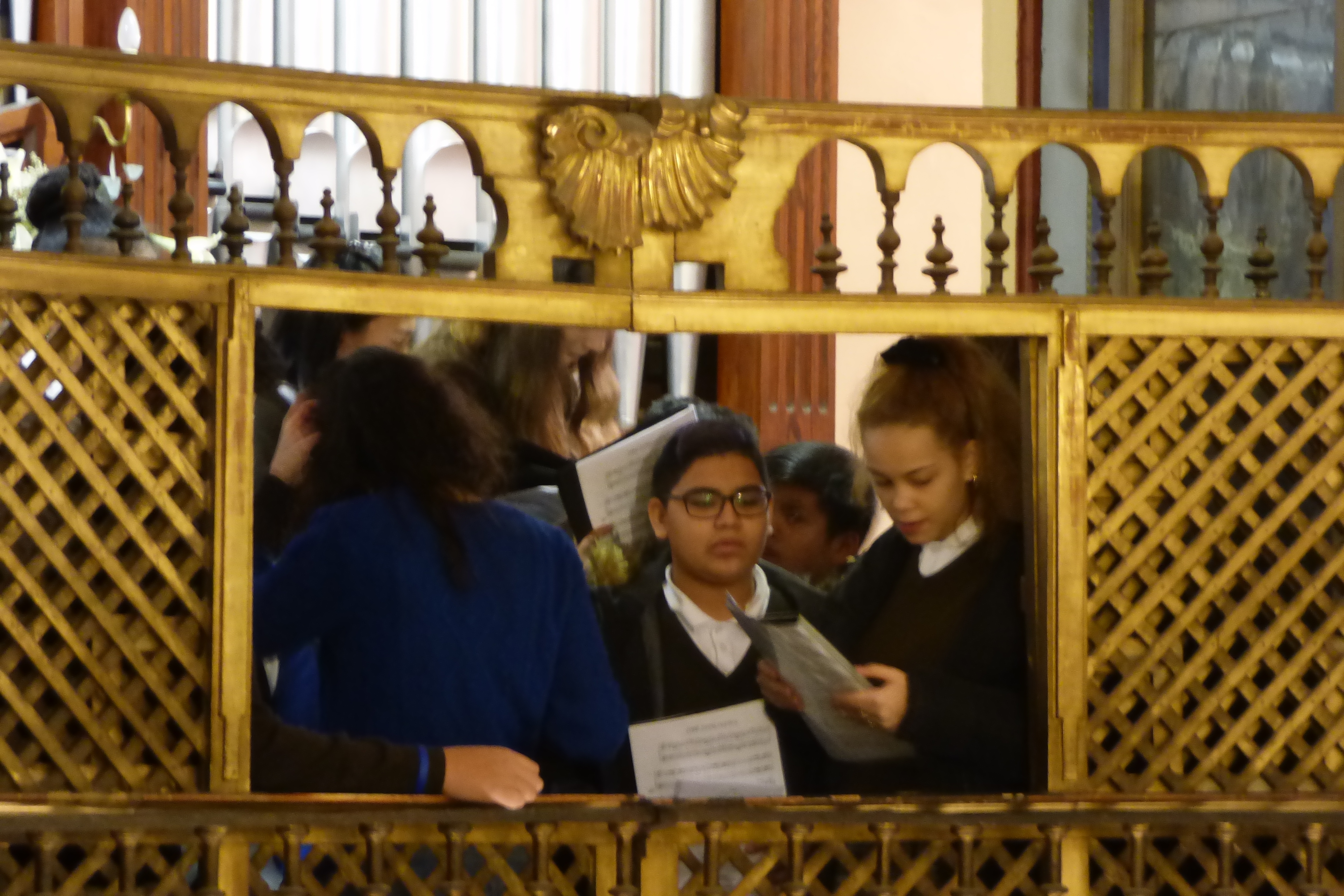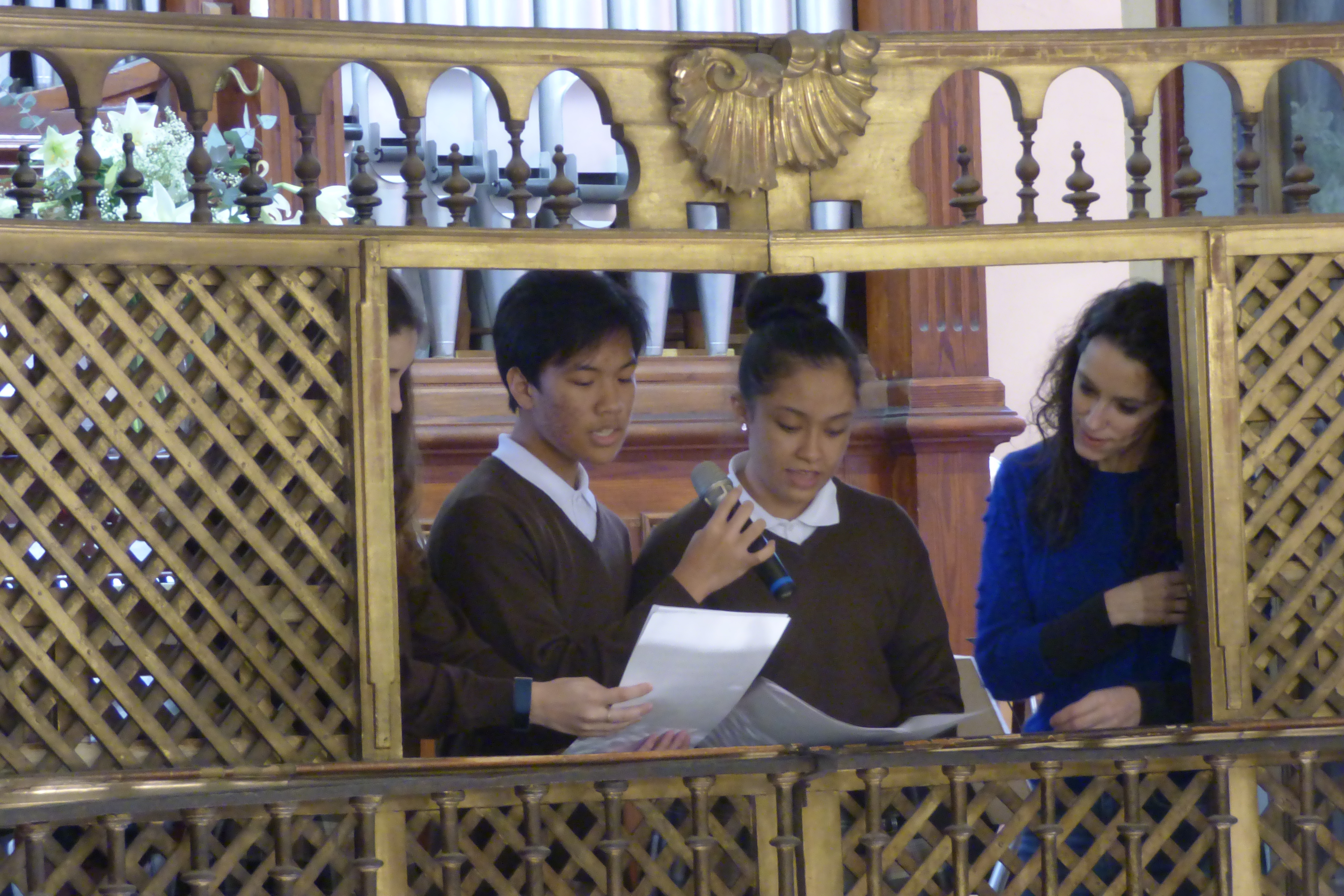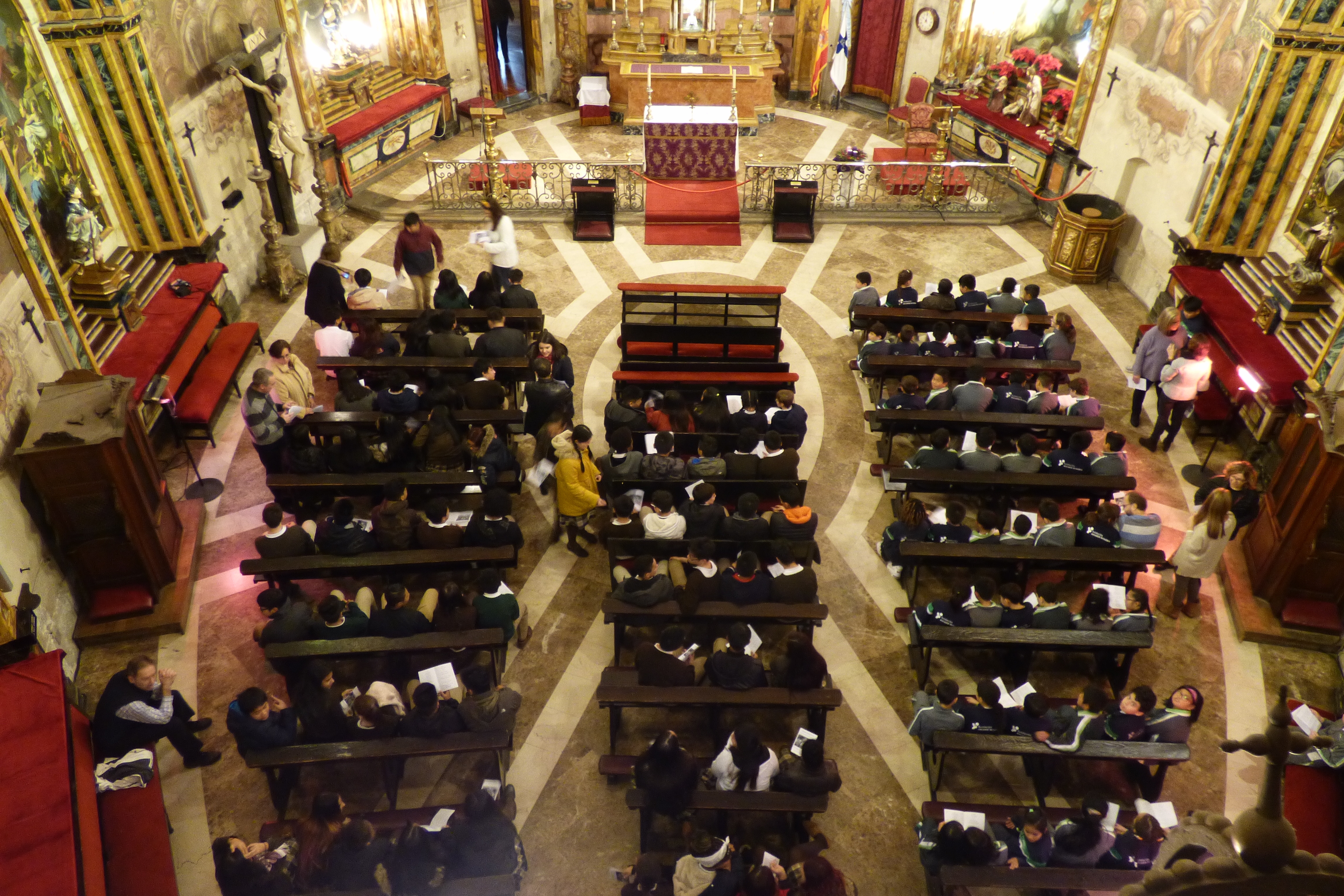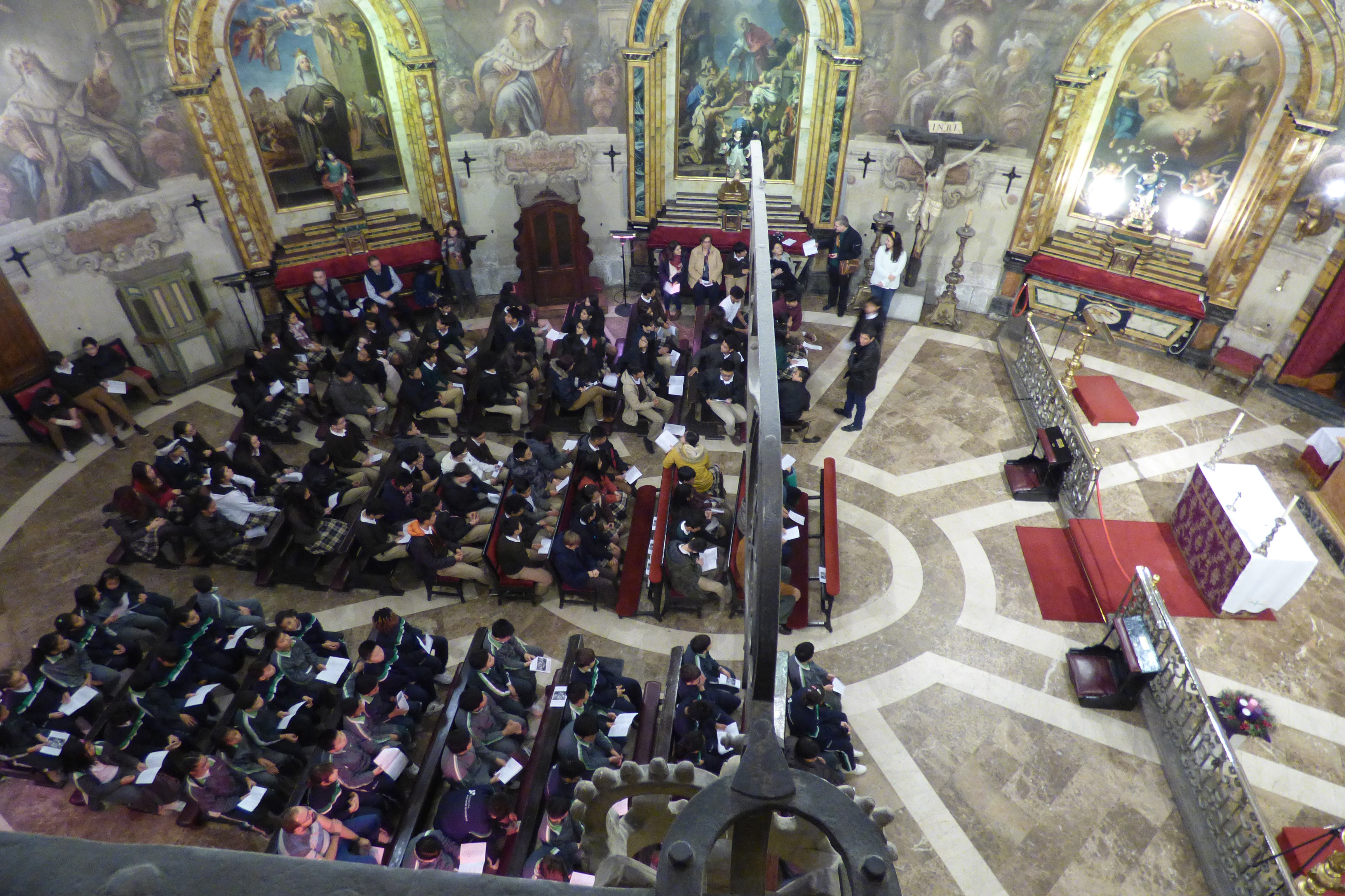 Los alumnos del coro de la ESO realizan un concierto en la Iglesia de San Antonio de los Alemanes frente al resto de alumnos de la ESO, las clases de 4º y 5º de primaria, profesores y padres.